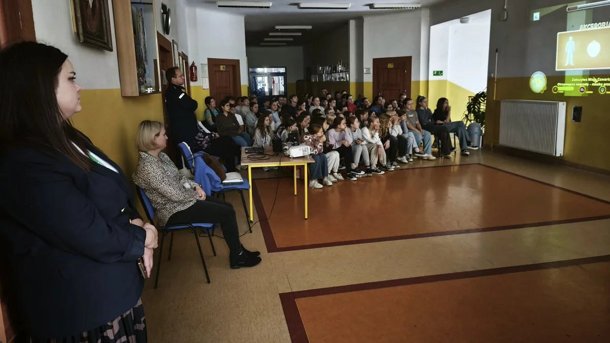 Nie zabrakło także tematyki związanej z kampanią „Dzieciństwo bez przemocy”. Policjant tłumaczył uczniom, na czym polega przemoc rówieśnicza i cyberprzemoc oraz gdzie szukać pomocy, aby każde dziecko wiedziało, że ma prawo do bezpieczeństwa - zarówno fizycznego, jak i psychicznego.