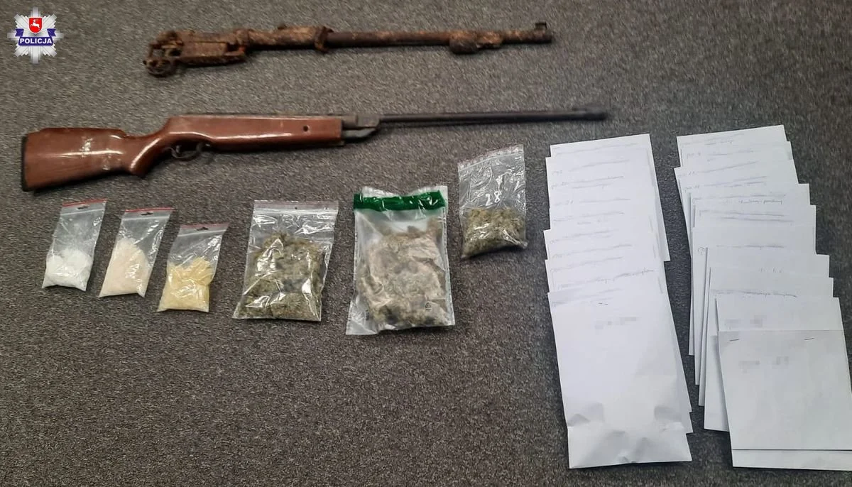 Policjanci znaleźli ukryte w mieszkaniu narkotyki: ponad 600 gramów substancji o właściwościach amfetaminy i ponad 100 gramów marihuany. Przy okazji znaleźli także przerobioną wiatrówkę oraz 80 sztuk amunicji do KBKS i nabój karabinowy