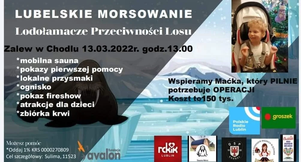 W najbliższą niedzielę nad zalewem w Chodlu odbędzie się impreza charytatywna. Całkowity dochód z niej przeznaczony jest na kosztowną operację małego Maćka ze Słotwin.