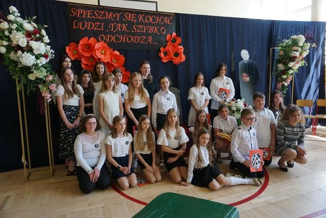 Uczniowie pod opieką swoich nauczycieli przygotowali wzruszającą akademię, która miała formę montażu muzyczno-słownego. Oczywiście na podstawie życia i twórczości ks. Jana Twardowskiego.