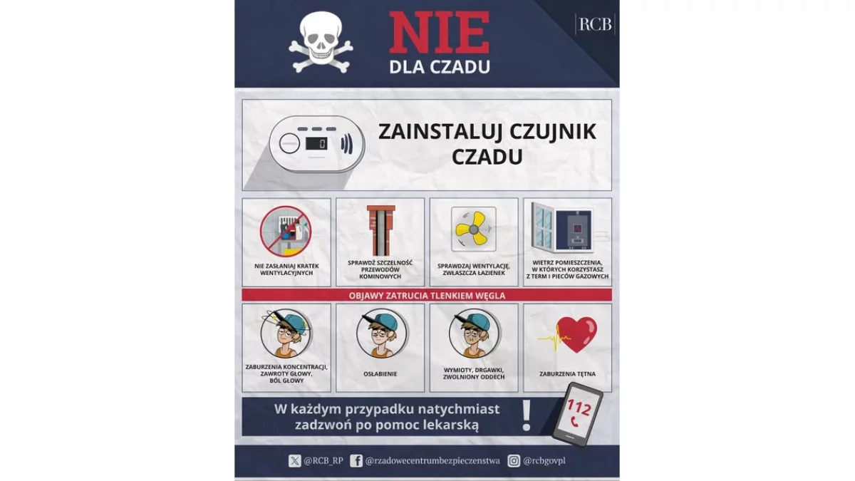 Jak podkreślają służby, zimą nawet drobne zaniedbania w zakresie bezpieczeństwa mogą mieć tragiczne konsekwencje. Niewłaściwa wentylacja, niesprawne urządzenia grzewcze czy brak regularnych przeglądów instalacji to najczęstsze przyczyny pojawienia się czadu – bezwonnego i niewidocznego gazu, nazywanego „cichym zabójcą”.