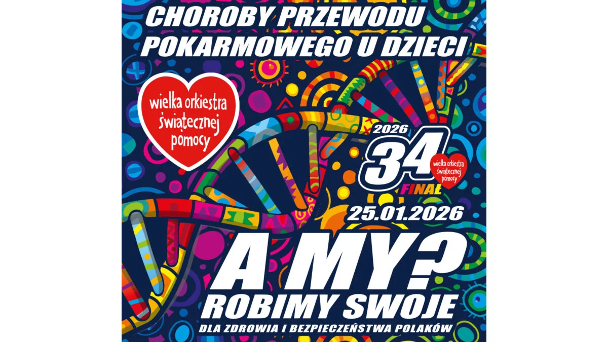 Tegoroczny, 34. Finał WOŚP, który odbędzie się 25 stycznia 2026 r., zagra dla dzieci – celem zbiórki będzie gastroenterologia dziecięca i leczenie chorób przewodu pokarmowego.