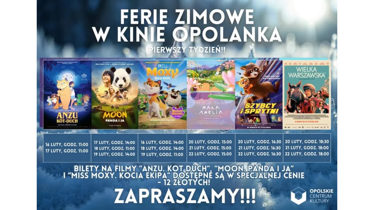 Organizatorzy podkreślają, że to dobra okazja, by w czasie ferii spędzić czas razem – w rodzinnej atmosferze i na dużym ekranie. Seanse odbywają się w Kinie Opolanka.