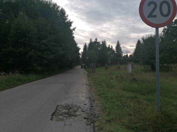 Drogą prowadzącą przez Rozalin jechaliśmy w czerwcu, potem w lipcu i ostatnio we wrześniu. Za każdym razem, gdy zbliżaliśmy się do progu zwalniającego, napotykaliśmy ten sam widok. Gigantyczną dziurę w asfalcie, która stwarza zagrożenie dla kierowców. Zaobserwowaliśmy też, że z miesiąca na miesiąc wyrwa staje się coraz większa, gdyż kolejne partie asfaltu wykruszają się. I ku naszemu zaskoczeniu nikomu ten stan rzeczy nie przeszkadzał. Nikt też nie kwapił się, aby ją załatać.