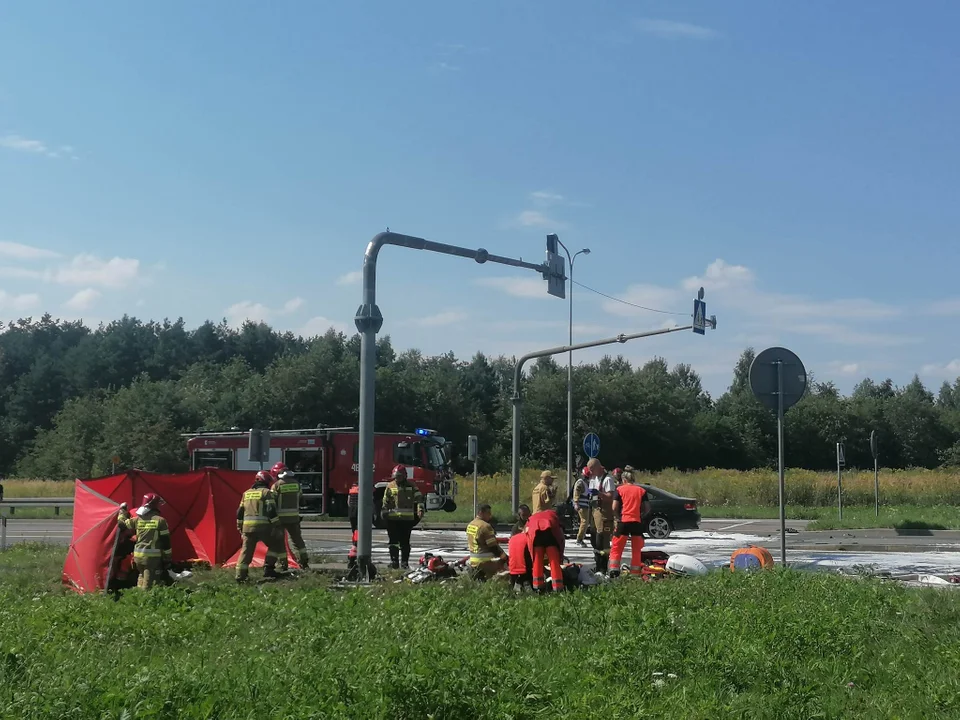 Droga w dalszym ciągu jest zablokowana, policjanci wyznaczyli objazdy przez Chodel i Przytyki. 23-latek kierujący BMW był trzeźwy.