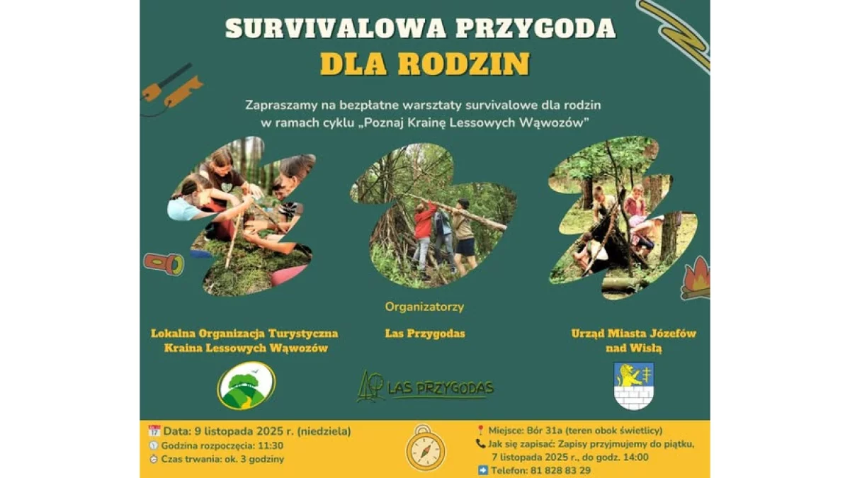 Informacje opolskieKiedy ostatni raz rozpalaliście ognisko bez zapałek albo próbowaliście odnaleźć drogę w lesie bez telefonu? Jeśli dawno, to najwyższy czas to zmienić! W najbliższą niedzielę, 9 listopada, w miejscowości Bór koło Józefowa nad Wisłą odbędą się wyjątkowe, bezpłatne warsztaty survivalowe dla rodzin. To idealna okazja, by oderwać się od codzienności, złapać oddech wśród natury i przeżyć coś naprawdę wyjątkowego.
