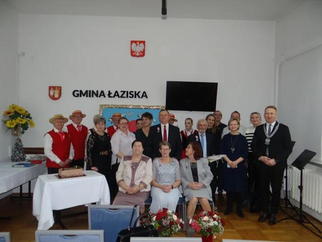 Z tej okazji Karol Grzęda, wójt gminy Łaziska, wręczył Jubilatom Medale za Długoletnie Pożycie Małżeńskie przyznawane przez prezydenta RP, a Katarzyna Banaś, zastępca kierownika Urzędu Stanu Cywilnego w Łaziskach wręczała kwiaty.