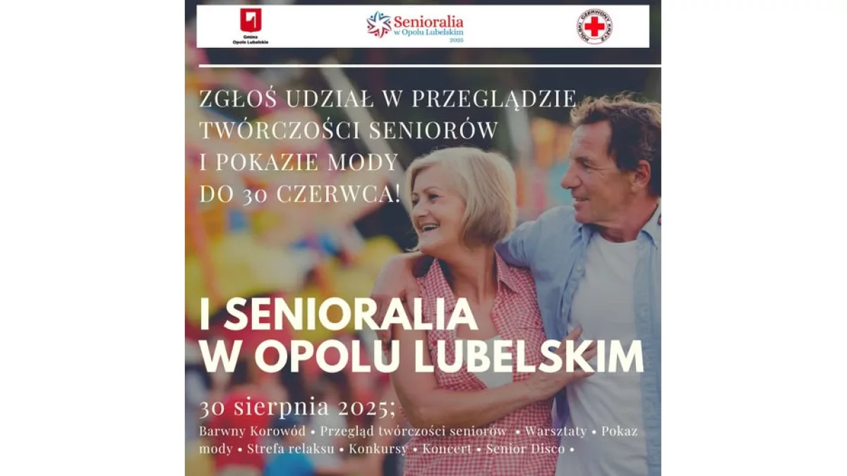 Informacje opolskieW sobotę, 30 sierpnia Park Miejski w Opolu Lubelskim rozbłyśnie barwami i energią podczas pierwszych Senioraliów, organizowanych wspólnie przez gminę oraz Polski Czerwony Krzyż. To wyjątkowe wydarzenie zostało stworzone z myślą o seniorach – jako wielka inauguracja sezonu wspólnej aktywności, twórczego wyrazu i dobrej zabawy.
