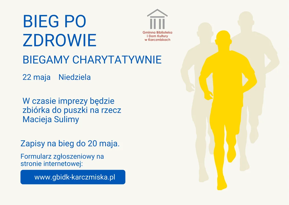 22 maja w Karczmiskach odbędzie się akcja charytatywna na sportowo. Będzie można pobiec, dbając o własne zdrowie i formę, ale przy okazji wesprzeć zbiórkę na leczenie Maciusia Sulimy, który mieszka w Słotwinach.