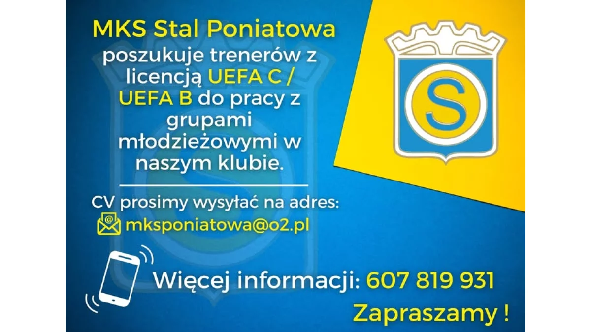 MKS Stal Poniatowa zaprasza wszystkich trenerów, którzy chcą być częścią lokalnej społeczności sportowej i razem z klubem budować przyszłość młodego pokolenia piłkarzy.