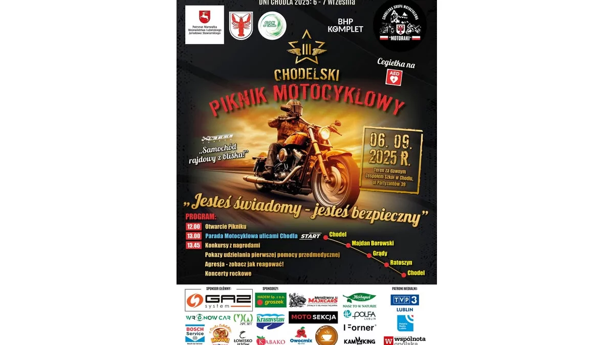 III Chodelski Piknik Motocyklowy to nie tylko spotkanie pasjonatów motocykli – to także wydarzenie, które buduje świadomość społeczną i promuje odpowiedzialne zachowania na drodze.