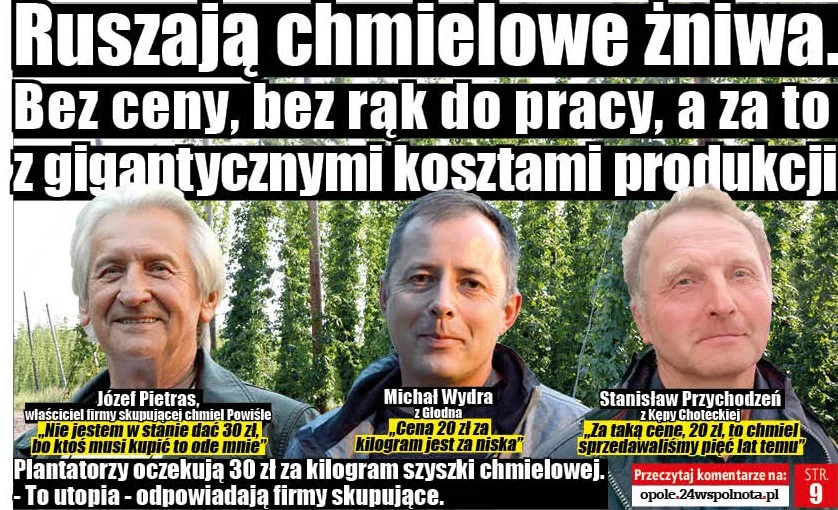Plantatorzy chmielu chcieliby sprzedać swoje zbiory za wyższą cenę, ale firmy skupujące nie chcą się na to zgodzić.
