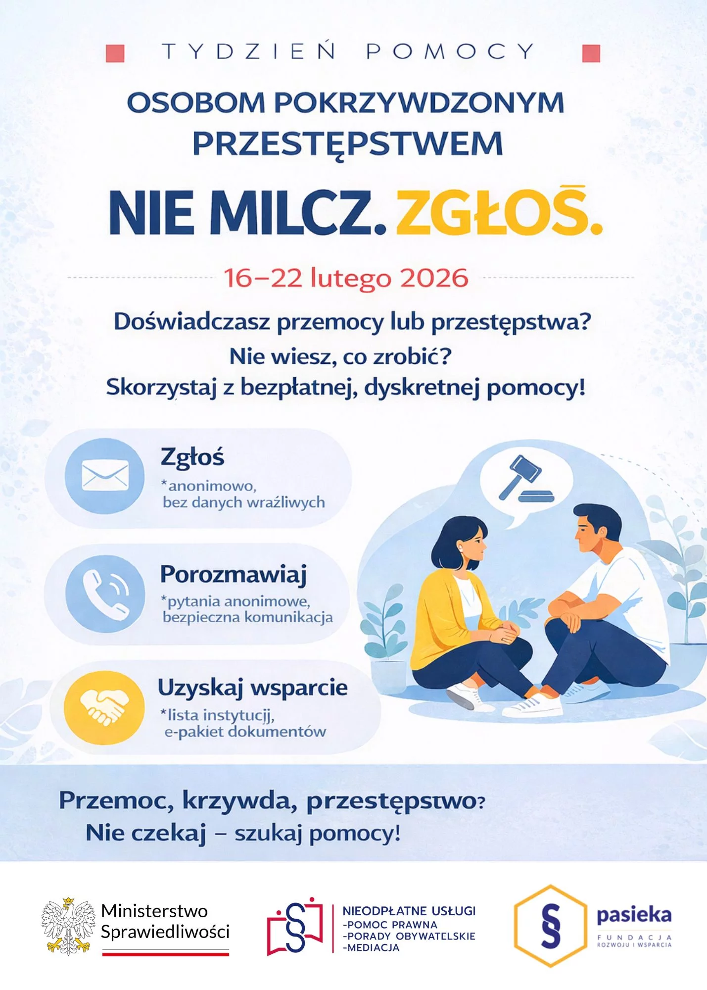W ramach specjalnej kampanii przygotowano bezpłatne konsultacje prawne i informacyjne, a także materiały, które pomogą zrozumieć prawa ofiar i dostępne formy wsparcia.