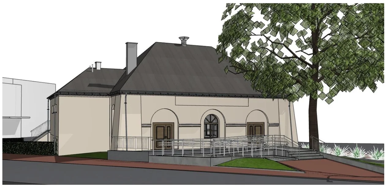 · zagospodarowanie terenu wokół budynku, w tym budowę schodów i pochylni dla osób z niepełnosprawnościami.