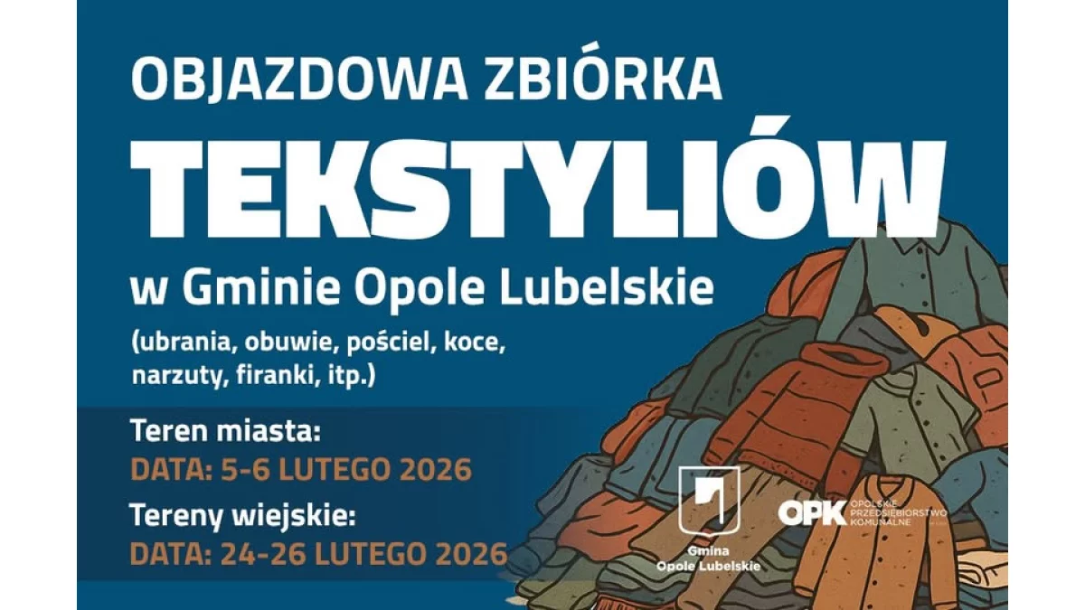 W ramach zbiórki będzie można oddać m.in. czyste i suche ubrania, obuwie połączone w pary, pościel, koce, narzuty, firanki, zasłony oraz inne tekstylia użytkowe. Odpady te nie powinny trafiać do pojemników na odpady zmieszane – ich selektywna zbiórka pozwala ograniczyć ilość odpadów i wspiera działania proekologiczne gminy.