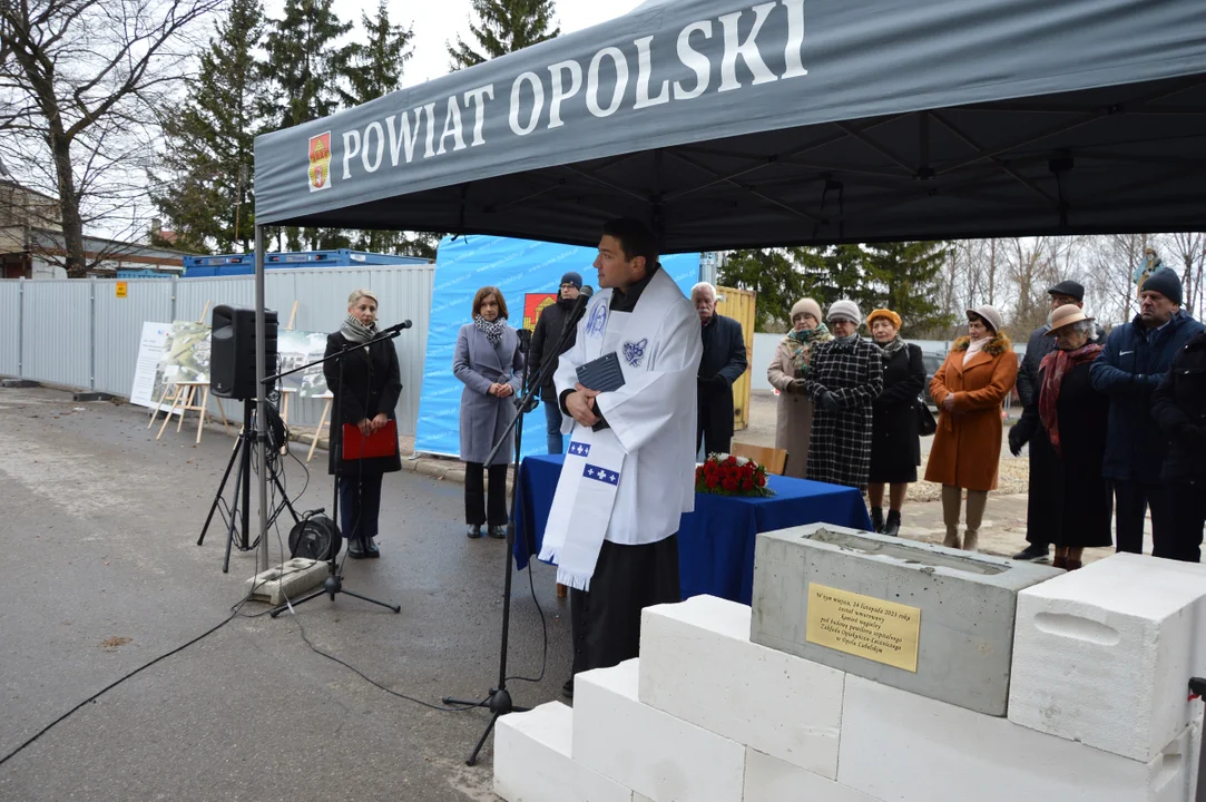 W piątek na terenie szpitala w Opolu Lubelskim uroczyście wmurowany został kamień węgielny pod budowę nowego pawilonu szpitalnego. Mieścić ma się w nim nowa siedziba Zakładu Opiekuńczo-Leczniczego, który obecnie funkcjonuje w budynku dawnego oddziału internistycznego.