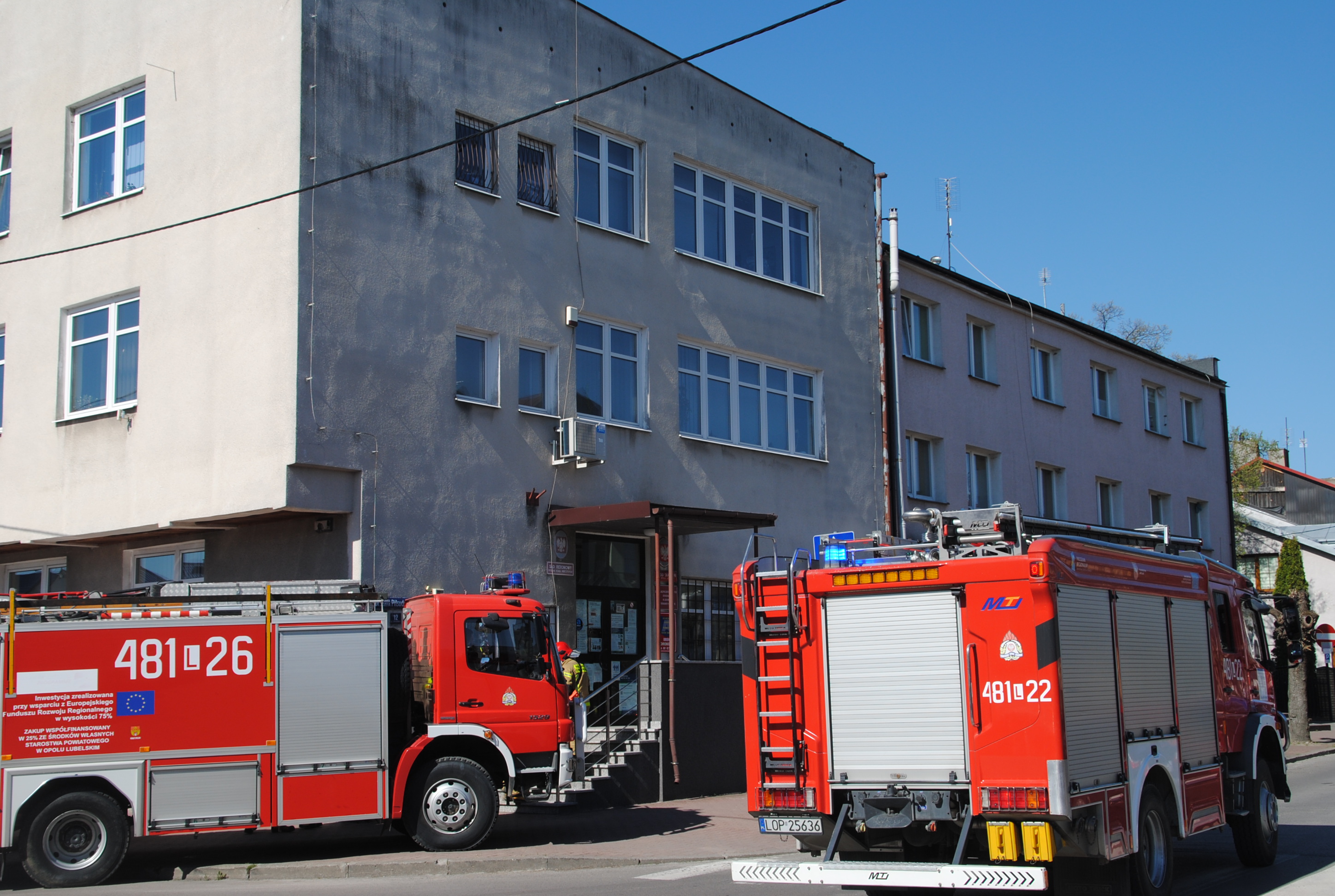 Na nogi postawiona została straż pożarna. Pod skarbówkę podjechało cztery wozy strażackie z 13 strażakami.