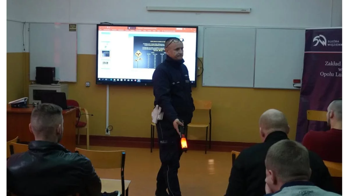 Prelekcję poprowadził asp. Grzegorz Pluta z opolskiej drogówki. Uczestniczyły w niej osoby odbywające kary pozbawienia wolności za przestępstwa związane z ruchem drogowym, m.in. za prowadzenie pojazdów w stanie nietrzeźwości czy spowodowanie wypadków drogowych.