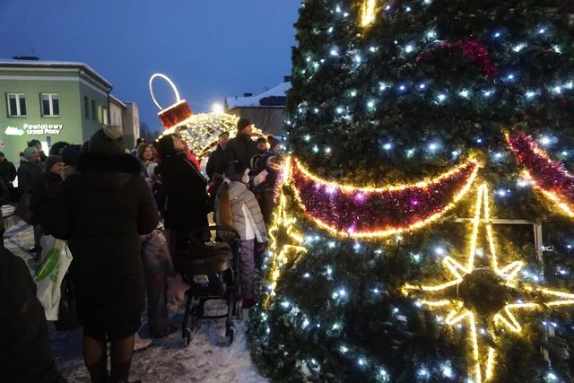 No ale punktem kulminacyjnym popołudnia było uroczyste rozświetlenie choinki w centrum miasta! Dzieciaki uroczyście odliczały, a lampki włączył Sławomir Plis, burmistrz miasta, Sławomir Plis.