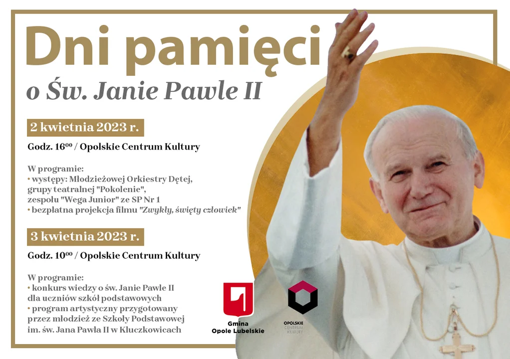 Uroczystości związane z upamiętnieniem Świętego Jana Pawła II w Opolu Lubelskim rozpoczynają się dziś, 2 kwietnia o godzinie 16.