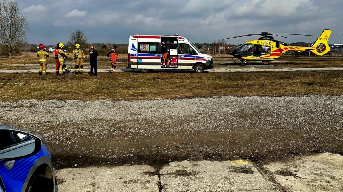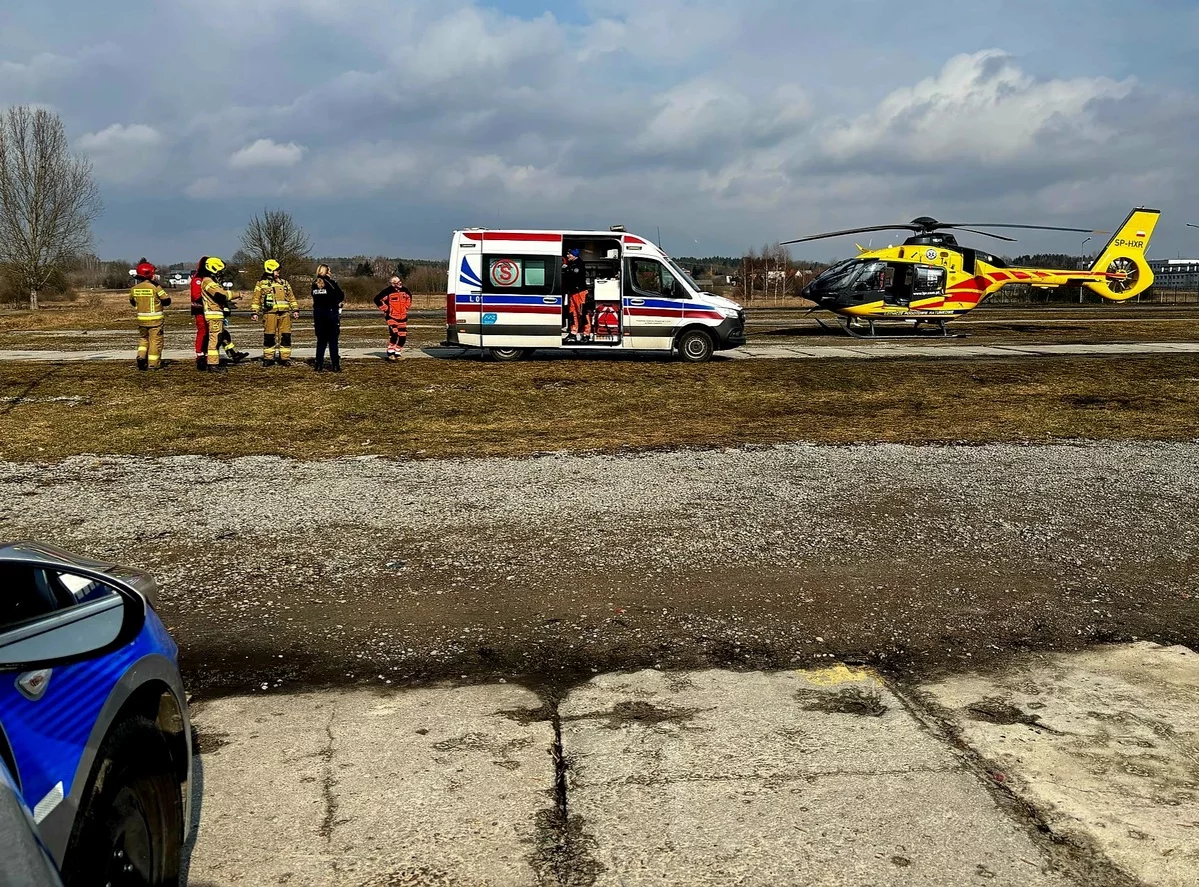 82-latek z licznymi poparzeniami całego ciała został przetransportowany helikopterem Lotniczego Pogotowia Ratunkowego do specjalistycznego szpitala. Na działce mężczyzna przebywał sam.