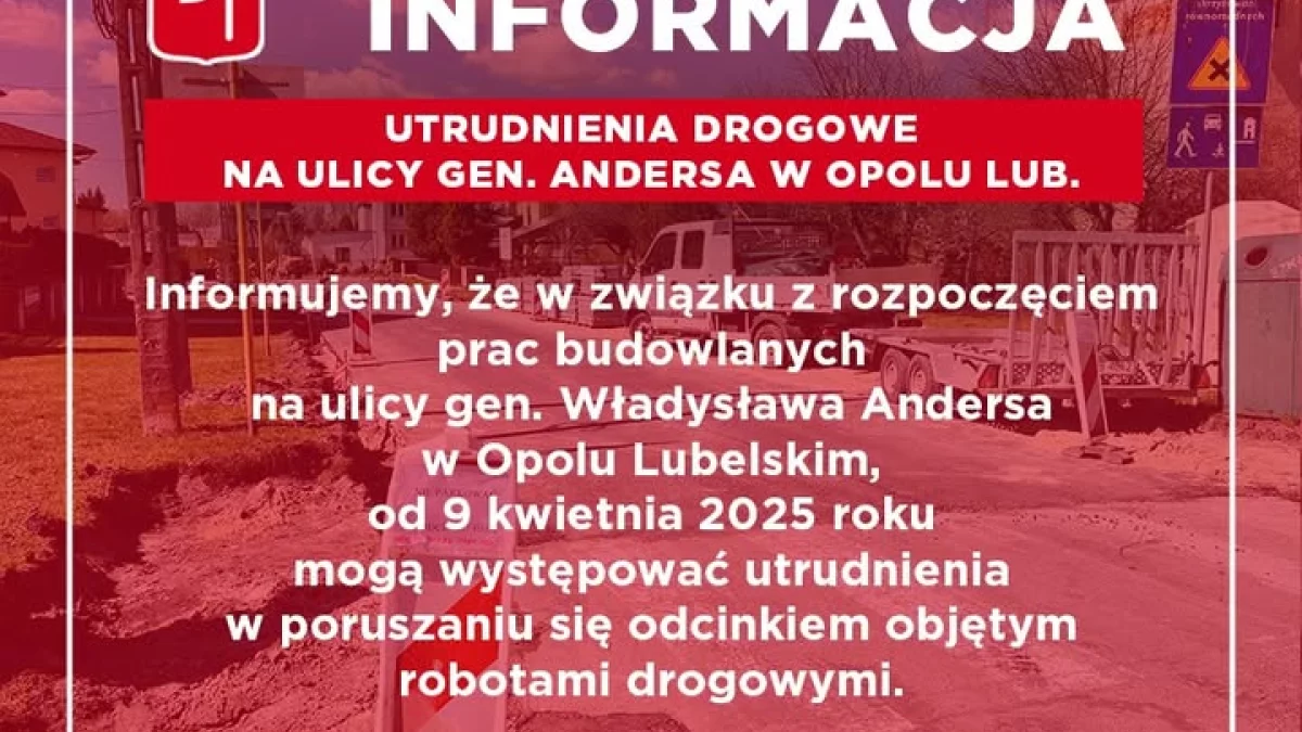 Od dziś (środa, 9 kwietnia) kierowcy muszą liczyć się z utrudnieniami na ulicy Generała Andersa w Opolu Lubelskim.