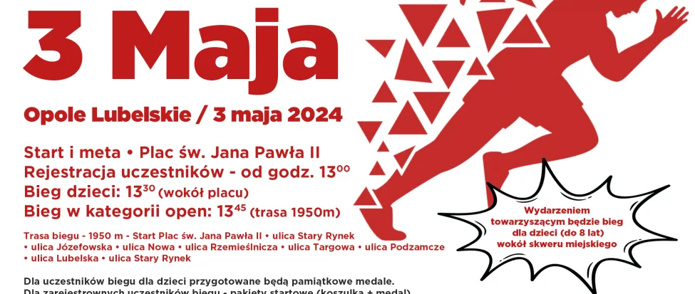 Kontakt w sprawie biegu: bieg3maja@cusopolelubelskie.pl lub telefonicznie pod numerem: 504341717.