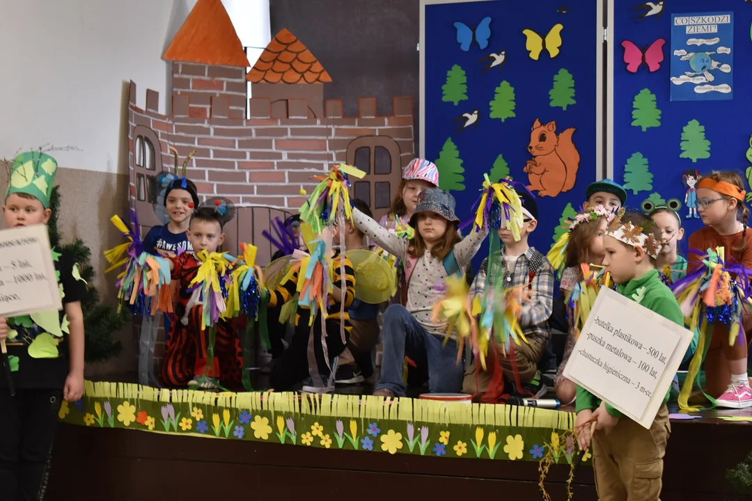 Młodzi aktorzy zaprezentowali ciekawe, wychowawcze i edukacyjne przedstawienia - ekobajki. Uczniowie kl. 1B pod opieką wychowawczyni Barbary Kani przygotowali przedstawienie pt. "Wiosenne pogawędki – bajka ekologiczna", kl. 5A pod opieką wychowawczyni Małgorzaty Sadurskiej zaprezentowała sztukę pt. "Królewna Śnieżka i Ekoludki". Spektakl wzbogaciły piosenki zaśpiewane przez uczniów grupy świetlicowej pod opieką Jolanty Szczupak.