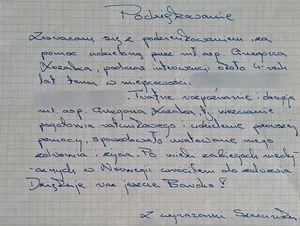 Pisemne podziękowania mieszkaniec gminy Józefów nad Wisłą przekazał komendantowi, podinsp. Leszkowi Wierzejskiemu.