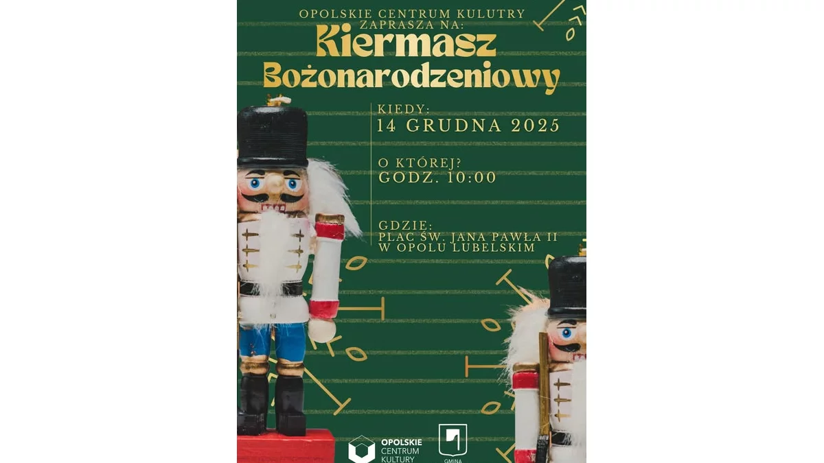 Opolskie Centrum Kultury po raz kolejny zaprasza mieszkańców i gości na wyjątkowy Kiermasz Bożonarodzeniowy, który odbędzie się 14 grudnia o godz. 10:00 na Placu św. Jana Pawła II w Opolu Lubelskim. To jedno z najbardziej wyczekiwanych wydarzeń zimy, pełne ciepła, kolorów i atmosfery nadchodzących świąt.