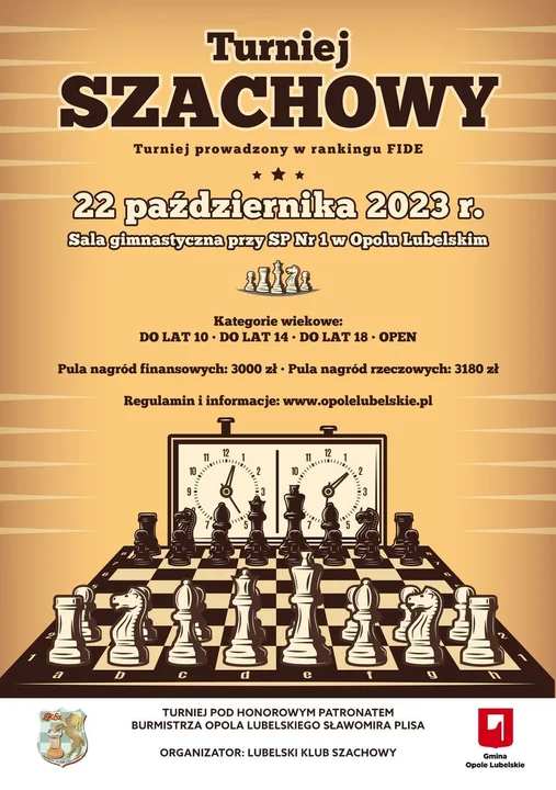 Turniej odbędzie się pod patronatem Burmistrza Opola Lubelskiego Sławomira Plisa oraz Lubelskiego Klubu Szachowego.