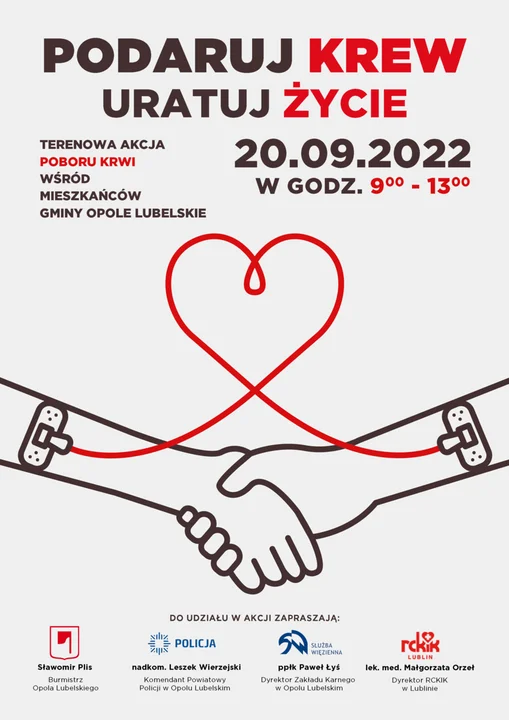 - Biorąc udział w tym przedsięwzięciu w prosty sposób możemy przyczynić się do ratowania ludzkiego życia i zdrowia. Zapraszamy wszystkich do honorowego oddania krwi. Ta prosta forma pomocy może przyczynić się do uratowania ludzkiego życia – zachęca asp.szt. Edyta Żur, rzecznik prasowy Komendy Powiatowej Policji w Opolu Lubelskim.