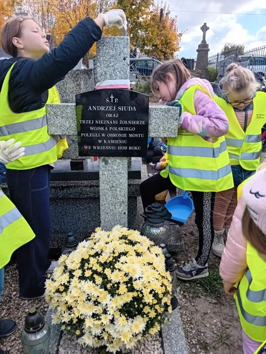 Uczniowie klas od pierwszej do czwartej tuż przed Dniem Wszystkich Świętych odwiedzili cmentarz w Piotrawinie. Uzbrojeni w niezbędne narzędzia posprzątali grób żołnierzy, którzy polegli podczas II wojny światowej, zapalili znicze i złożyli kwiaty. Wszystko pod czujnym okiem swoich wychowawczyń - Katarzyny Gazdy, Hanny Jakoniuk, Katarzyny Głogowskiej i Katarzyny Pióro.
