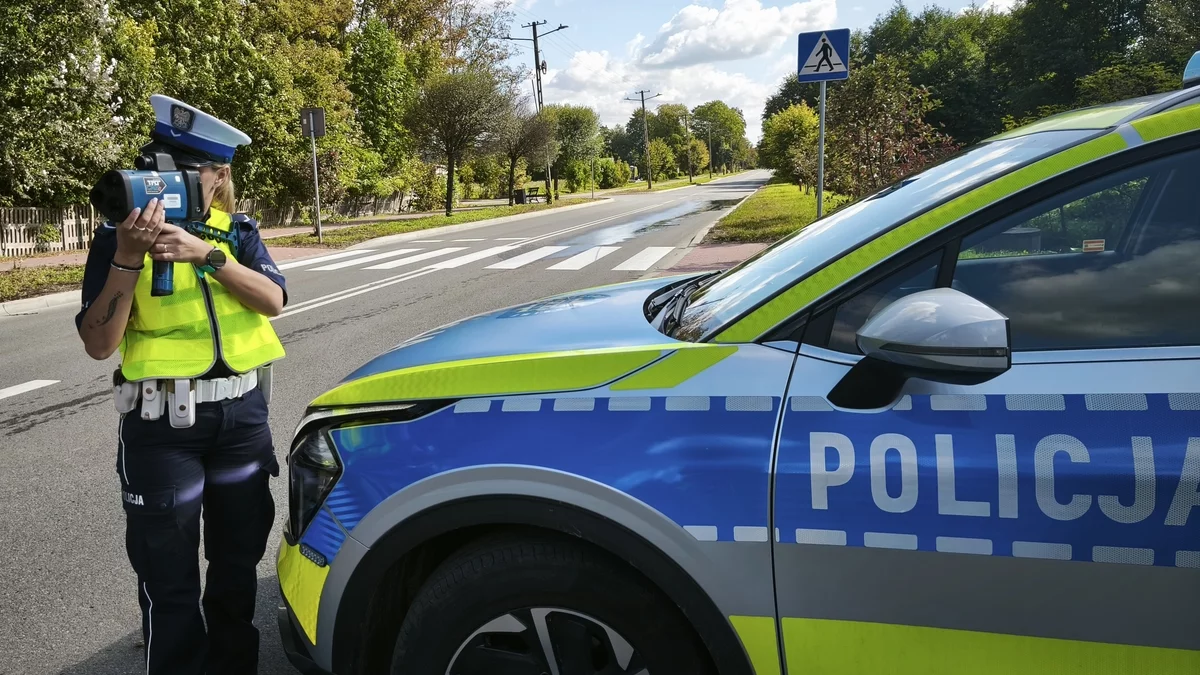 Funkcjonariusze kontrolują prędkość pojazdów, przypominając kierowcom o konsekwencjach łamania przepisów i konieczności zachowania szczególnej ostrożności.