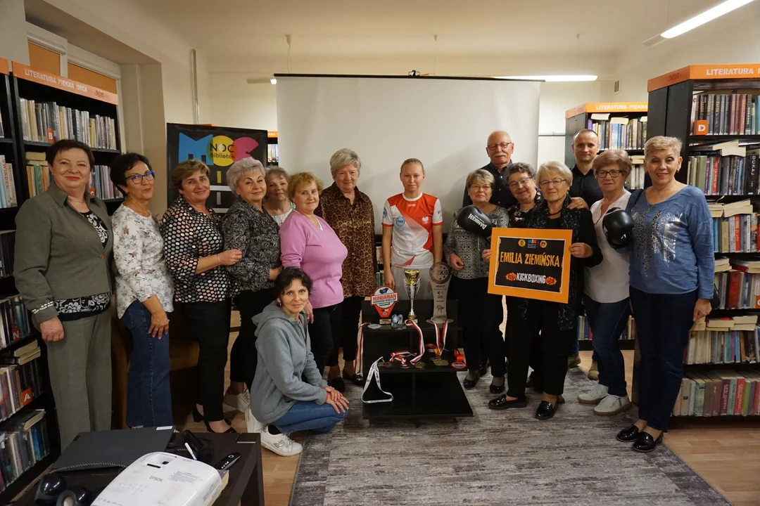 Wieczór rozpoczął się... sportowo. Bibliotekę odwiedziła Emilia Ziemińska - Mistrzyni Polski Juniorów i zdobywczyni Pucharu Świata w kickboxingu.