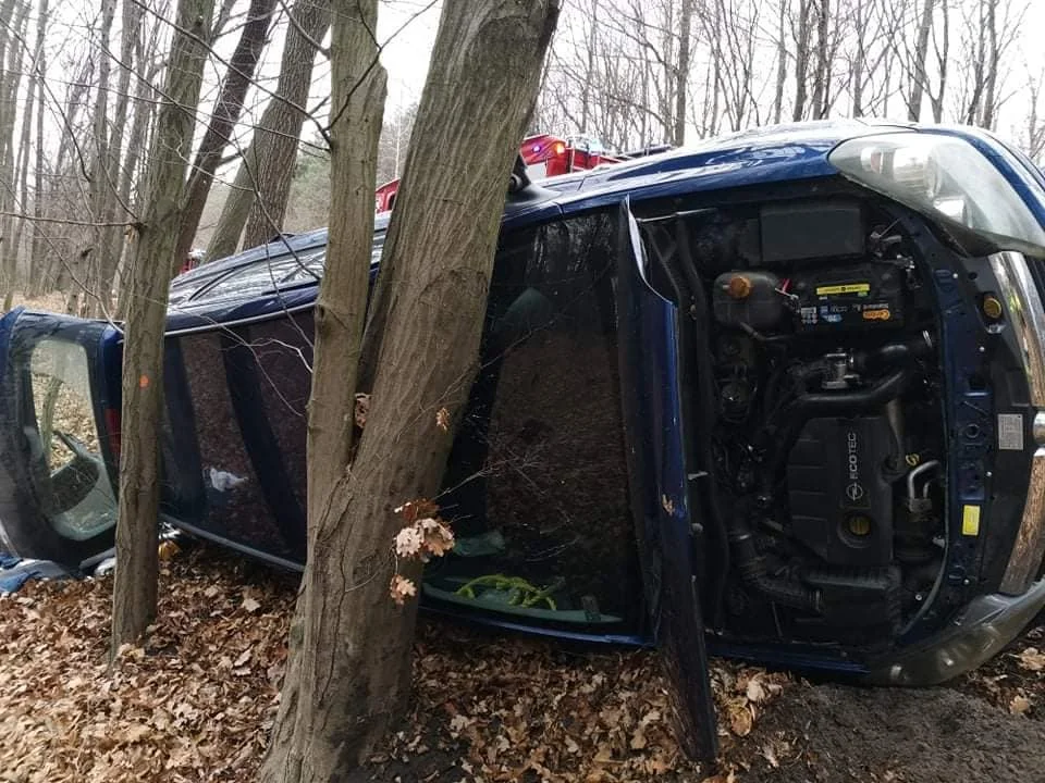 Do zdarzenia doszło w niedzielę po godzinie 9, w pobliżu cmentarza komunalnego w Poniatowej. Jak wynika ze wstępnych ustaleń, Opel Astra na opolskich numerach rejestracyjnych zjechał z drogi i przewrócił się na bok, opierając dachem o drzewo.