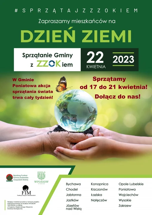 Zakład Zagospodarowania Odpadów Komunalnych w Bełżycach Sp. z o.o. wraz z Urzędem Miejskim w Poniatowej organizuje akcję sprzątania gminy Poniatowa. Mogą w niej wziąć udział wszyscy mieszkańcy, ale też sołectwa, spółdzielnie mieszkaniowe czy szkoły.