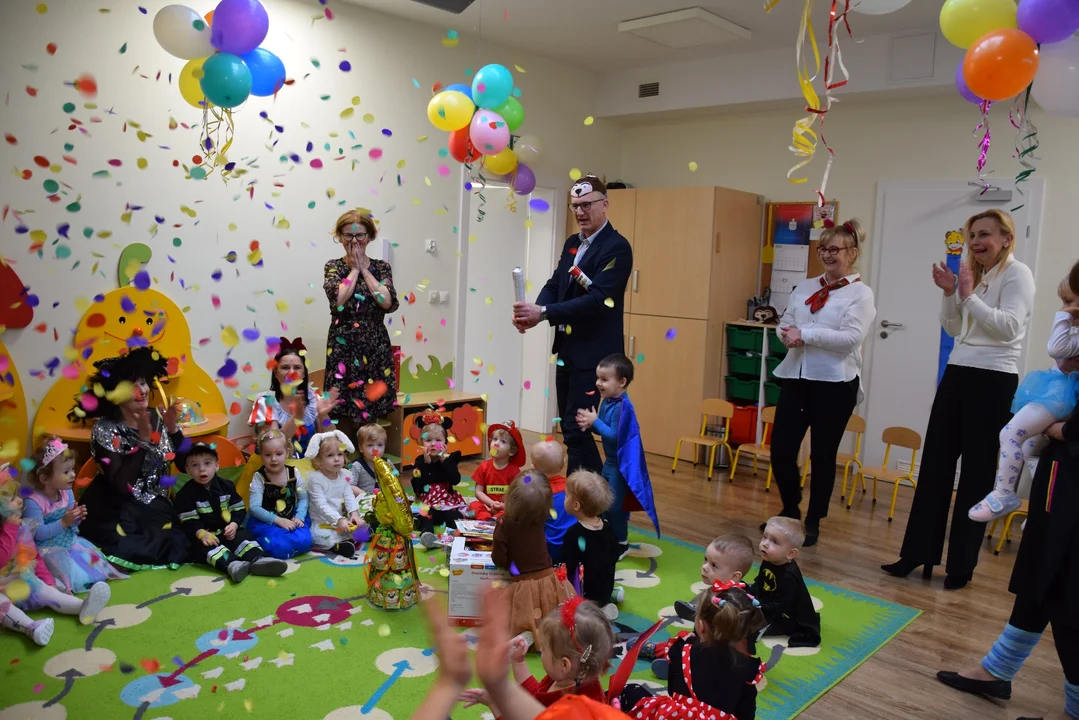 Z tej okazji w środę, 7 lutego w placówce zorganizowane zostało wielkie święto. A jak przystało na czas karnawału, było ono także okazją do przebrania się za postaci z bajek. Przebrali się wszyscy - dzieciaki, jak wiadomo, uwielbiają przebierać się za swoich ulubionych bohaterów. Ale również ich opiekunki tego dnia wyglądały inaczej. Było radośnie i kolorowo.