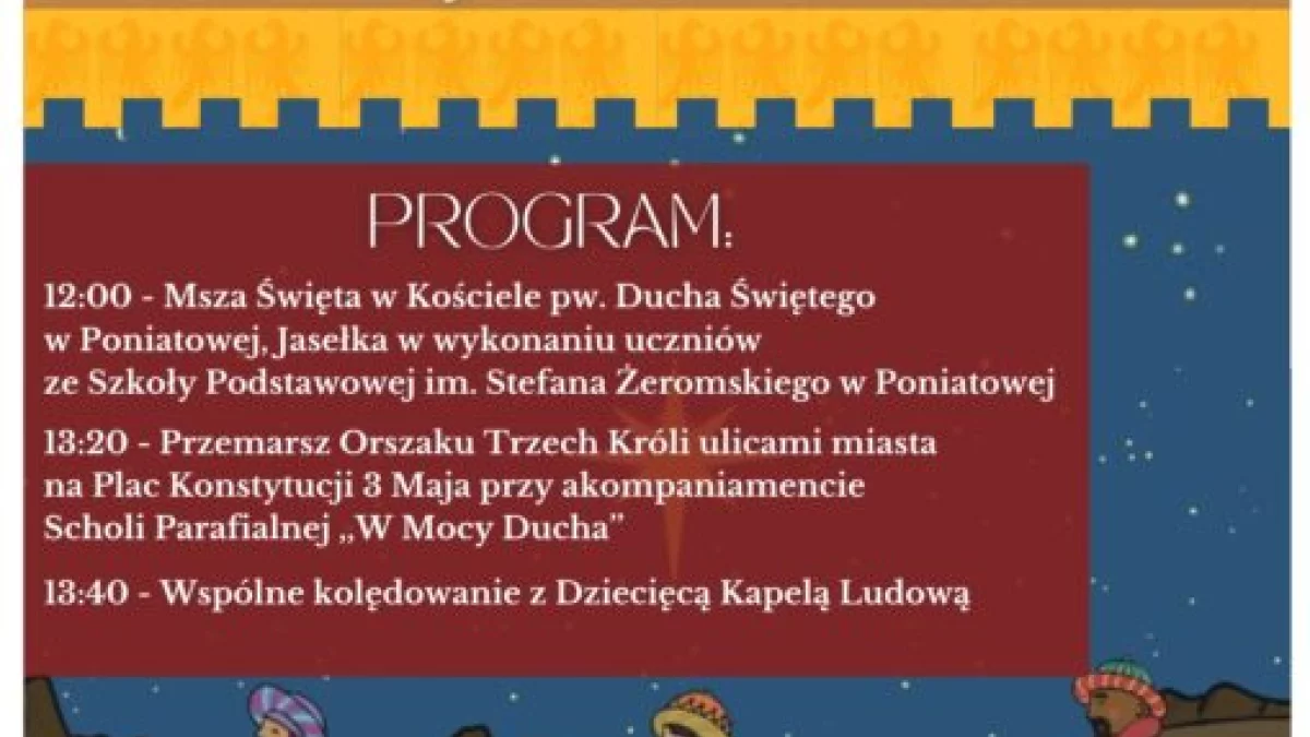- Świętujmy razem Objawienie Pańskie, biorąc udział w Orszaku Trzech Króli 6 stycznia (poniedziałek). Parafia pw. Ducha Świętego w Poniatowej wraz z Centrum Kultury Promocji i Turystyki w Poniatowej zapraszają! - zachęcają organizatorzy wydarzenia.