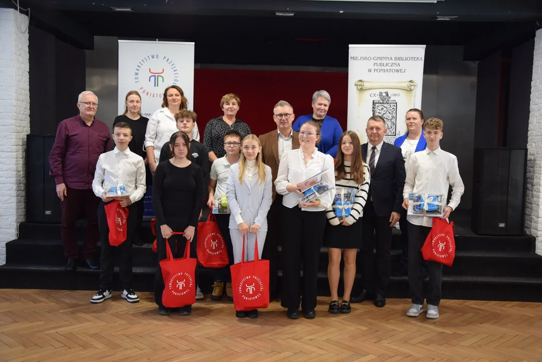 Laureaci, uczestnicy konkursu oraz ich opiekunowie otrzymali nagrody, które ufundował Urząd Miejski w Poniatowej.