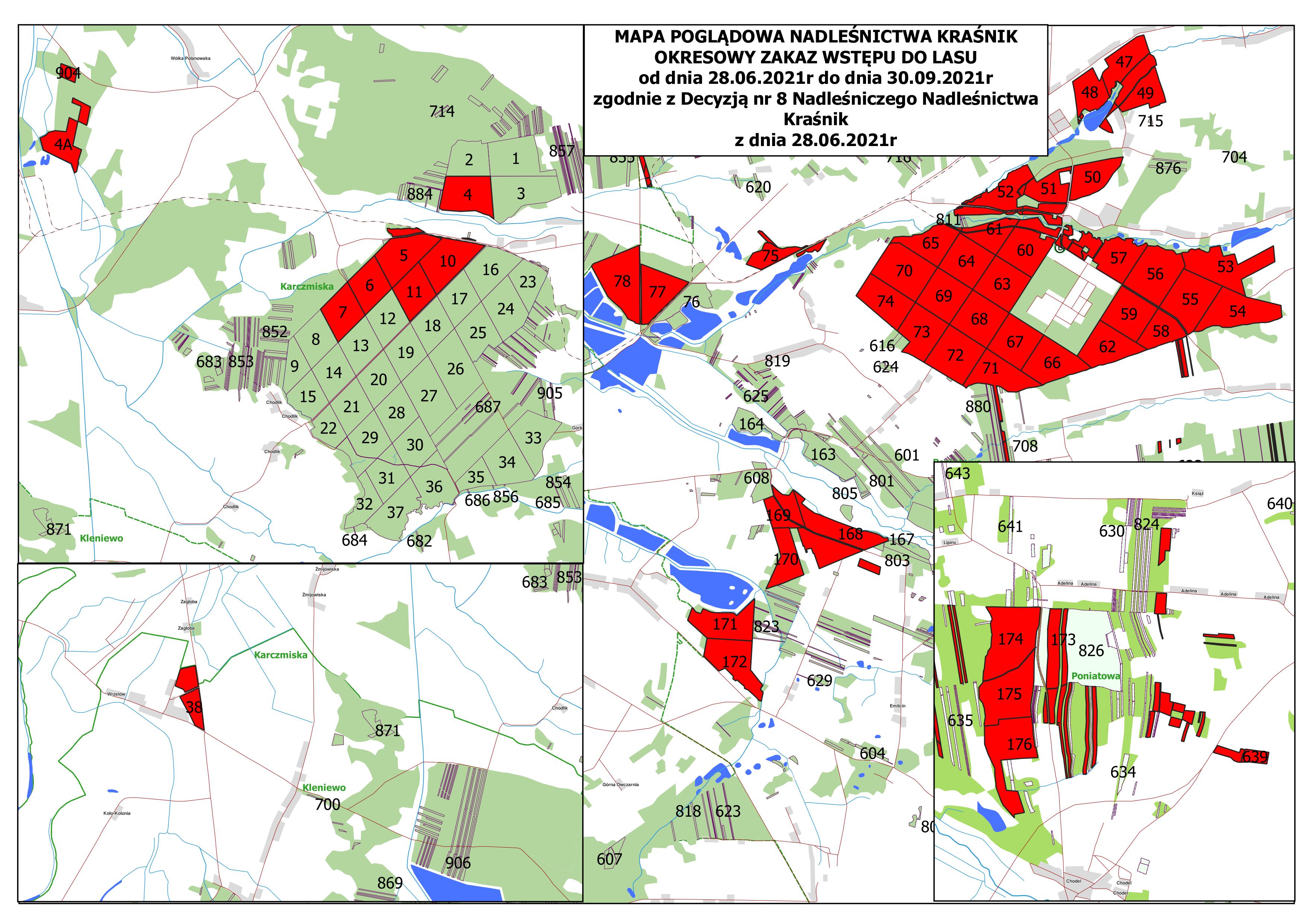 Największe szkody wichura wyrządziła w Leśnictwie Poniatowa (kompleksy Wąsosz, Poniatowa, Kulig, Kalinka i Chodel), Karczmiska (kompleksy Szczekarków i Poniatowa) i Kleniewo (kompleks Wrzelów). Do niektórych kompleksów leśnych nie można było wjechać. W związku z tym, że skala zniszczeń jest ogromna, Nadleśnictwo Kraśnik wprowadziło całkowity zakaz wstępu do lasów.
