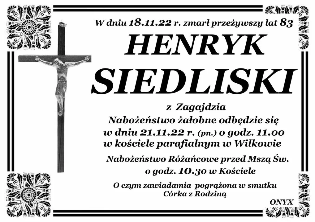 Nekrologi pochodzą z firm ONYX i PTAK.