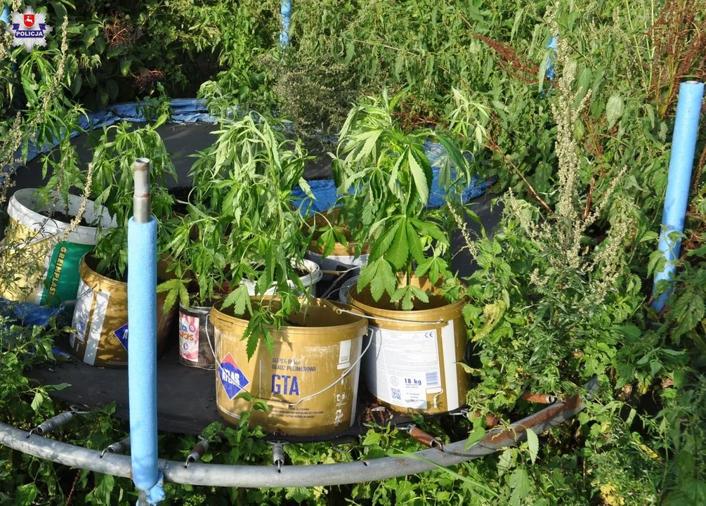 Kontynuując czynności mundurowi sprawdzili pomieszczenia mieszkalne i gospodarcze na posesji zamieszkiwanej przez 16-latkę. Ich wzrok przykuła trampolina schowana w zarośla. Okazało się, że na jej macie w doniczkach znajdowało się 12 krzewów konopi w różnych fazach wzrostu. Dodatkowo w pokoju zajmowanym przez nastolatkę policjanci ujawnili w strunowym woreczku susz marihuany.