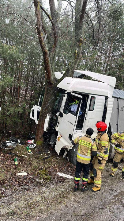 Tir uderzył w drzewo.