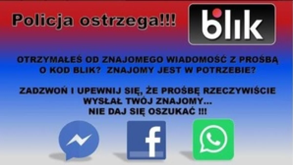 Funkcjonariusze przypominają, że banki i policja nigdy nie proszą o podanie kodów BLIK, haseł czy danych do logowania. W razie jakichkolwiek podejrzeń warto przerwać rozmowę i zgłosić sprawę na policję.