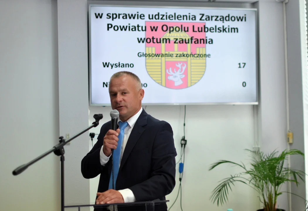 Większość radnych po zapoznaniu się z Raportem o stanie powiatu dobrze oceniła pracę Zarządu i zagłosowała za udzieleniem wotum zaufania (13 radnych było „za”). Od głosu wstrzymało się czterech radnych z PSL i Małej Ojczyzny – Tadeusz Błachnio, Andrzej Chyła, Zenon Rodzik i Gabriela Teresińska-Pruchniak.