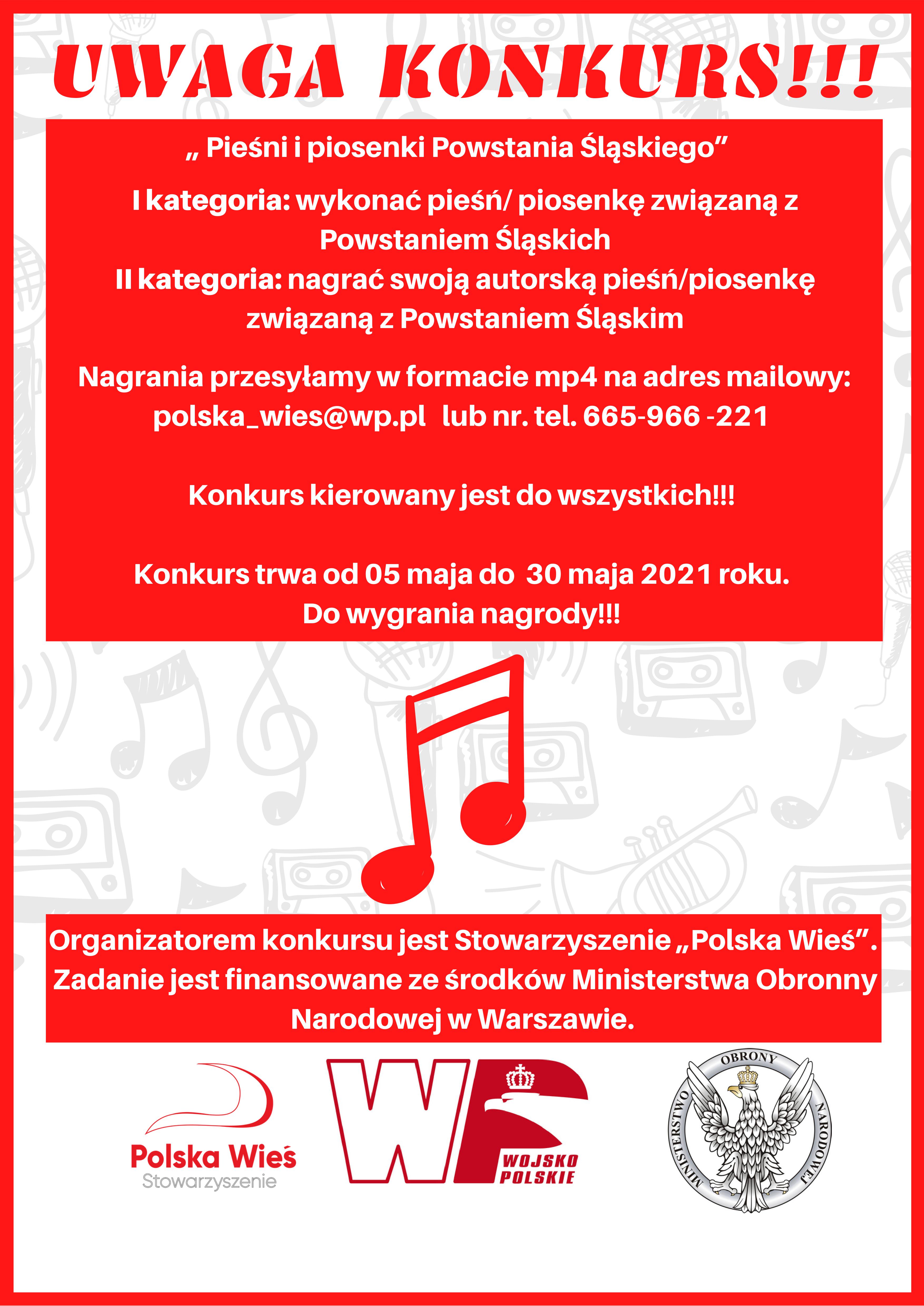 - Proponujemy, aby uczestnicy projektu wykonali i przesłali pieśni i piosenki związane z Powstaniem Śląskim w formie audio. Pragniemy też wszystkich zainspirować, dlatego w drugiej kategorii konkursu chcemy, aby ułożyli własne pieśni i piosenki inspirowane Powstaniem Śląskim – tłumaczy.
