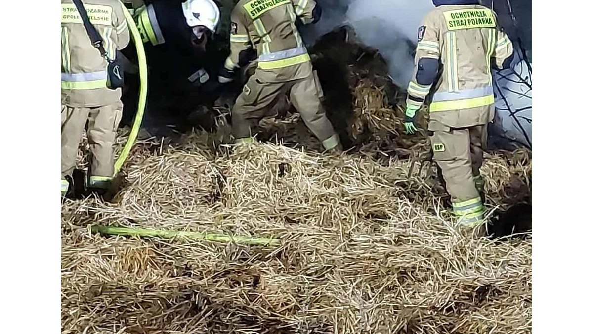 Ogień objął zgromadzoną na polu słomę. Dzięki sprawnej i szybkiej akcji ratowników udało się zapobiec rozprzestrzenieniu się pożaru i ograniczyć straty.