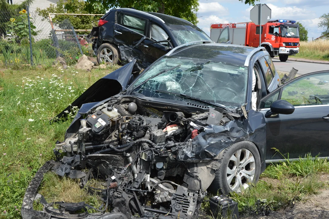 Siła uderzenia była tak duża, że samochody wpadły do przydrożnego rowu i zostały bardzo poważnie uszkodzone.
