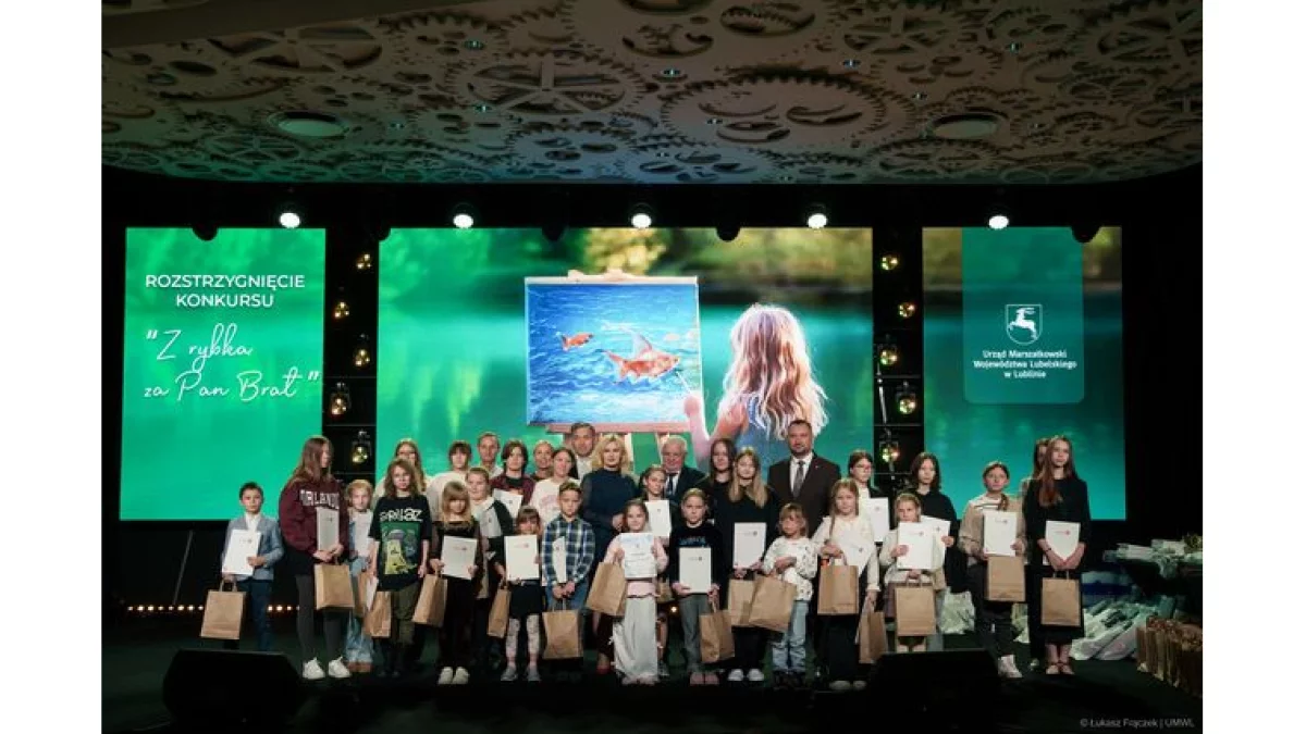 W środę, 29 października w Lublinie odbyła się uroczysta gala podsumowująca dwa wyjątkowe konkursy organizowane przez Urząd Marszałkowski Województwa Lubelskiego - „Z rybką za Pan Brat 2025” oraz „Złap rybkę 2025”. To już piąta edycja tej pięknej inicjatywy, która zachęca najmłodszych do poznawania świata ryb słodkowodnych, a także rozwija ich pasje i wyobraźnię.